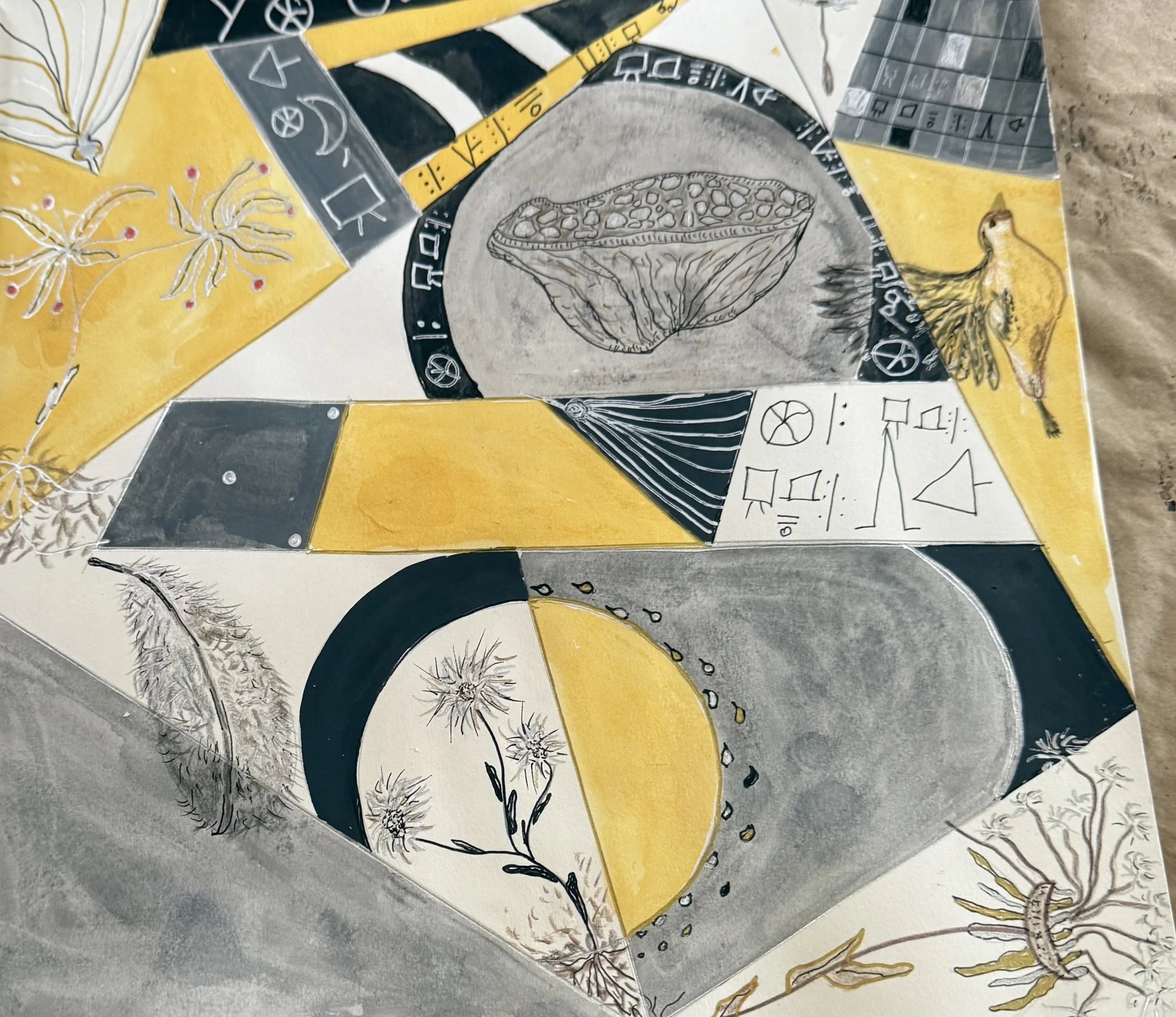 I deeply appreciate and want to acknowledge the support I have received throughout the years in developing my own style of art. I have recently been attending Laurie’s workshops in Taos since 2023 and each time I feel energized and inspired to engage and be adventurous in my creations. Another artist friend, Laura Marshall, has inspired me to explore and observe the details of texture in my nature drawings. As I slow down and feel the exchange between the inner movement and what is unfolding on paper a deep communion arises. This artistic and creative practice has nurtured my spiritual journey and connects me to a deeper/wider living into my experience and surroundings. When I settle into creating artwork time vanishes and a sense of belonging and interdependence arise.