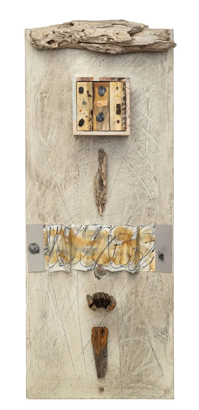 It took me a long time to find my own artistic language. I need a theme, which can be an idea, a text, or an occasion. Then I need time and space for something to develop. I rarely have a concrete idea of what the result will be. It’s a process of exploration and experimentation to discover the special qualities of materials, like my treasures from flea markets, beaches, nature, various papers, woods, ropes, boxes, and so on. The technique that gives me the most artistic freedom is collage, which I often turn into book objects. The connection creates something new. I have realized that I am not looking for perfection in my work, but rather a personal quality that is often allowed to be imperfect.