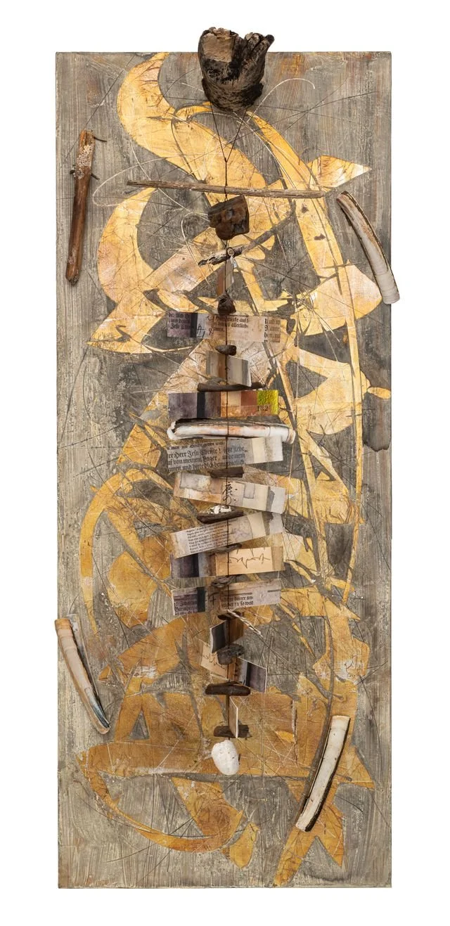 It is the combination of a wide variety of found materials. Ideally, the material tells me how I can process it and how it can develop its own language. The great difficulty is creating something new from these treasures, helping them find new life. The theme of one of my exhibitions was “Traces of Foreign Memories,” and most recently “From Sea to Beach to Picture,” using only objects found at the sea. Everything was attached with magnets so that they remained movable, just how things are on the beach.