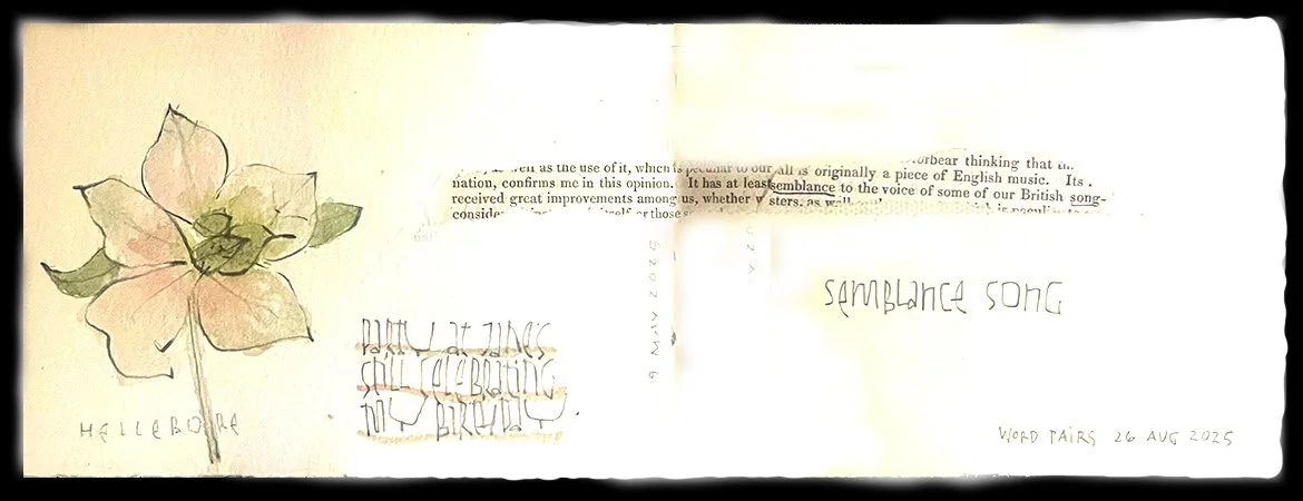 A ledger for word pairs (left)| Did you notice that I used two of these word pairs in my third paragraph? Sketchbook © Laurie Doctor